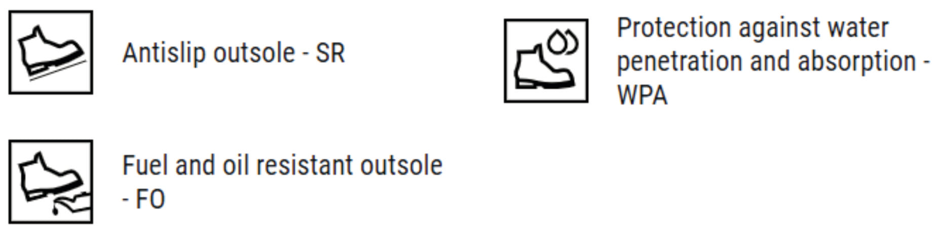 Bottes basses en PVC et nitrile résistantes aux chocs, à base de graisses végétales et animales, avec semelle à profil profond. Hauteur 28 cm.
