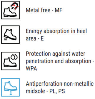 Chaussures hautes de sécurité modernes avec semelle intérieure composite anti-perforation et embout composite qui protège contre une compression d'une force maximale de 15 kN ou une charge pesant jusqu'à 20 kg tombant d'une hauteur de 1 mL la semelle antistatique composée d'un mélange de polyuréthane et de caoutchouc très résistant, garantit non seulement le confort mais aussi la sécurité grâce aux propriétés antidérapantes de la semelle, qui est également résistante aux huiles et à l'abrasion. La partie supérieure de la chaussure est en cuir naturel « NUBUCK » et la doublure intérieure est en polyester respirant. Des éléments réfléchissants garantissent une meilleure visibilité de l'utilisateur. Modèle est équipé d'une semelle intérieure confortable qui, grâce au talon en gel, absorbe encore mieux les chocs et apporte un maximum de confort pendant le travail • ces chaussures ressemblent à des chaussures de sport, mais elles protègent parfaitement vos pieds