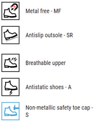 Chaussures de sécurité à la cheville avec un embout non métallique et une semelle intérieure antiperforation en aramide. Semelle extérieure en PU/Caoutchouc. Tige en cuir nubuck de haute qualité. Normes :EN ISO 20345 (S3 HRO SRC). Poids : 680 g