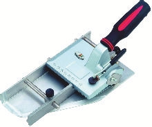 Construction entièrement en métal avec butée, plaque à ressort et poignée en plastique, largeur de travail jusqu'à 105 mm, réglable, pour la découpe précise de bandes de plinthes pour moquette jusqu'à max.