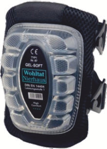 Des genoux souples dans de petites genouillères efficaces ! Le nid d'abeille innovant, flexible, àc oussin d'air et durable, assure une absorptioné levée des chocs avec une mobilité maximale.A vec sa petite forme flexible, la GEL-SOFT s'adapte à la fois au sol et au genou. Il esta ntidérapant et peut être utilisé sur presquet outes les surfaces. Il est entièrement lavable. DIN EN 14404. Applications: idéaux pour les travaux d´étanchéité, industrie automobile.