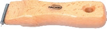 Support nickelé pour lames profilées en forme de S. Manche en bois poncé et verni.