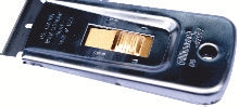 Boîtier métallique chromé avec lame rétractable.