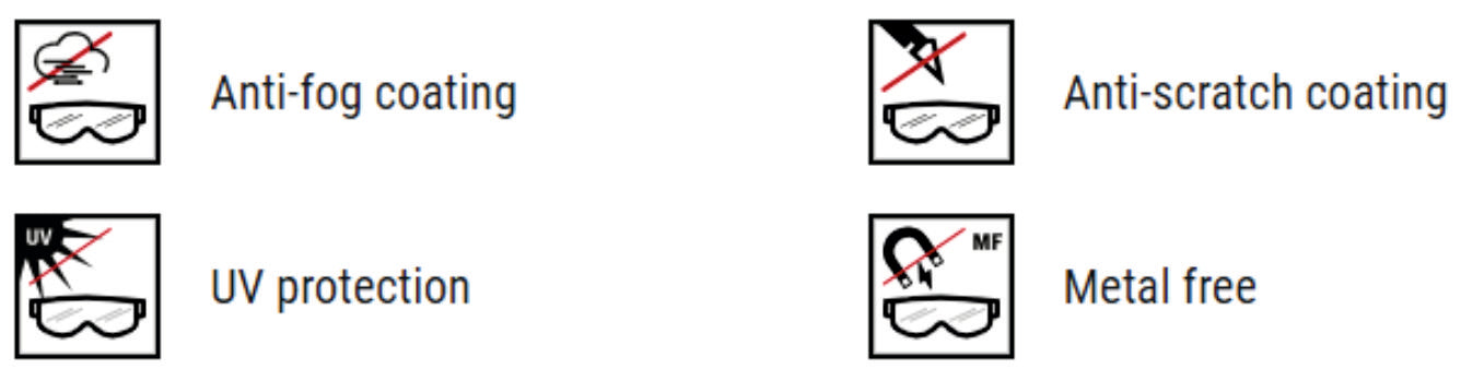 Caractéristiques :Type de verres : fumés, miroités, Bollé CSP, transparents, Bollé Platinum. Réglage de la monture en verre, réglage du pont nasal. Revêtement anti-buée et revêtement anti-rayures. Protection UV. Sans métal.
