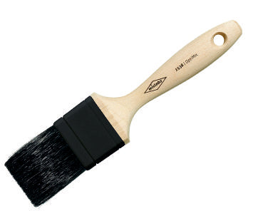 Soies en plastique noir, entièrement collés dans la manche. Manche en bois brut. Le pinceau idéal pour les applications avec peintures, lasures, vernis aussi bien en phase aqueuse et solvantées.