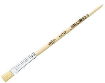 Pinceau d´artiste plat, manche courte, soies légères, virole en aluminium sans soudure, manche courte.